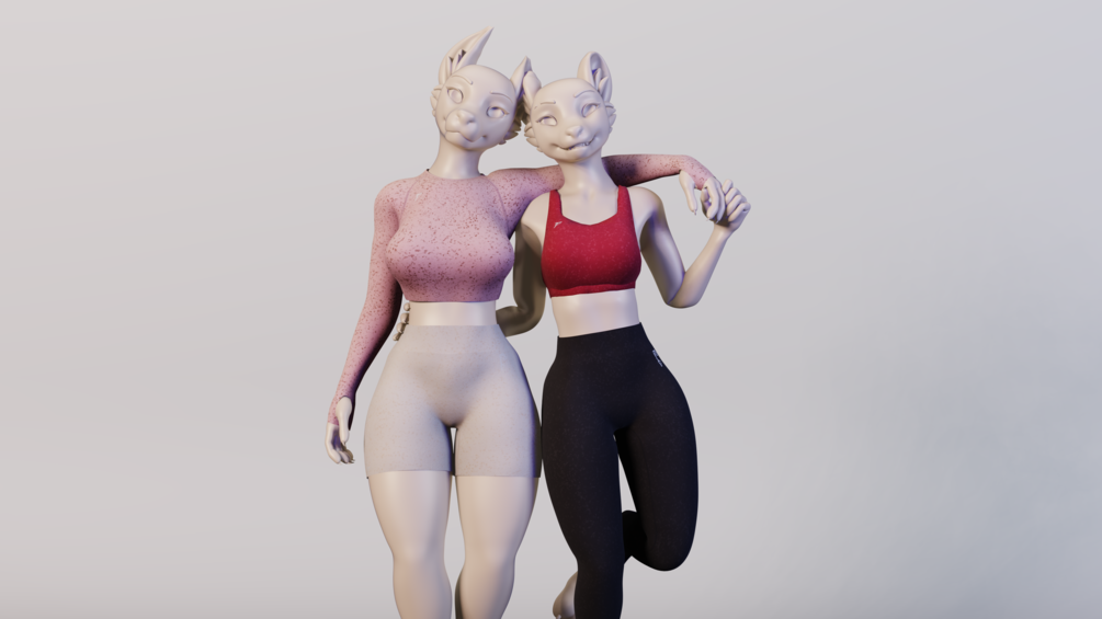 This Athletic Clothing pack is rigged and easy to set up thanks to VRCFury! Suited to fit all blend shapes of the Julia Winterpaw Fem canine base